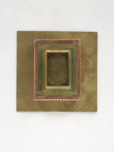Sickenbild A, Messingblech geschmiedet, profiliert, Emaillelack bemalt, 29 x 22,3 x 1 cm, 2024
