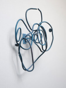 Scharnier, Stahldraht, Stahlblech profiliert, Emaillelack bemalt, 43,5 x 45 cm, Tiefe bis 25 cm variabel, 2024